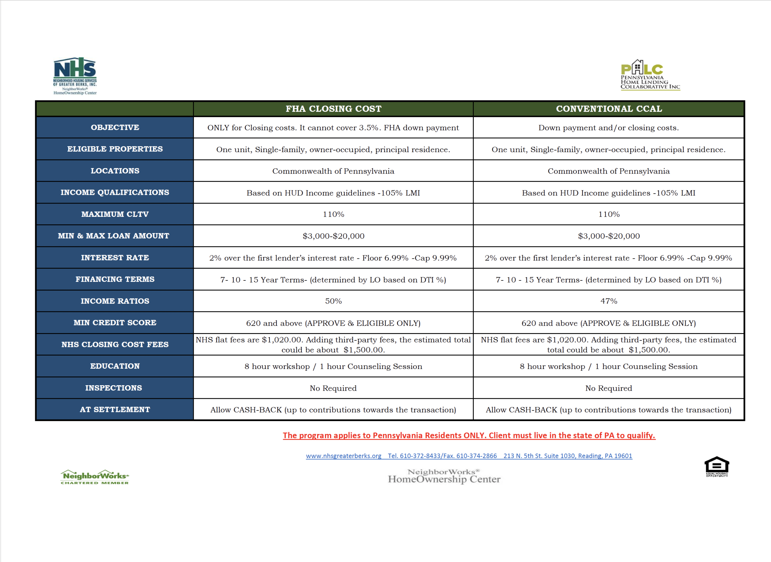 We understand the numerous challenges that come with making your dream of owning a home, a reality. That’s why here at PHLC we take pride in being the only lender to offer financial assistance for down payments and closing costs.